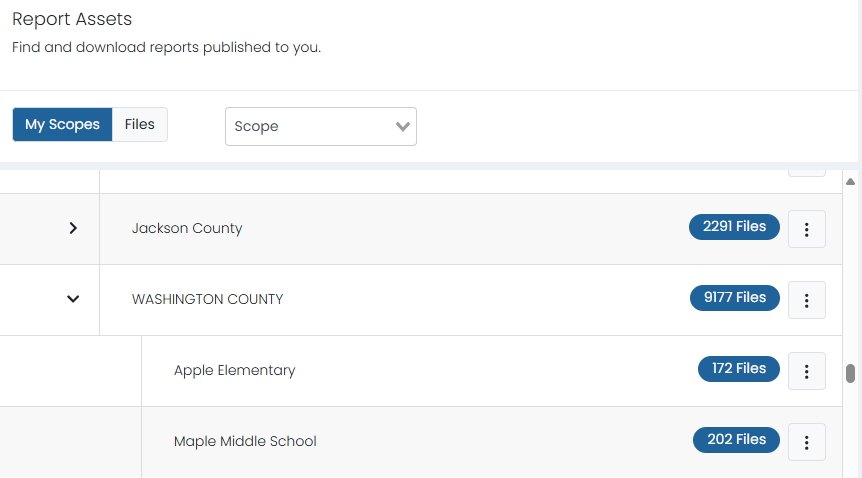 The My Scopes view displays files grouped by institutions you are permissioned to see.