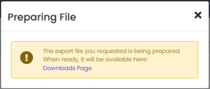 - A confirmation message will provide a link to the Downloads page. (This page can also be access via the Downloads icon at the top of the screen next to your initials.)