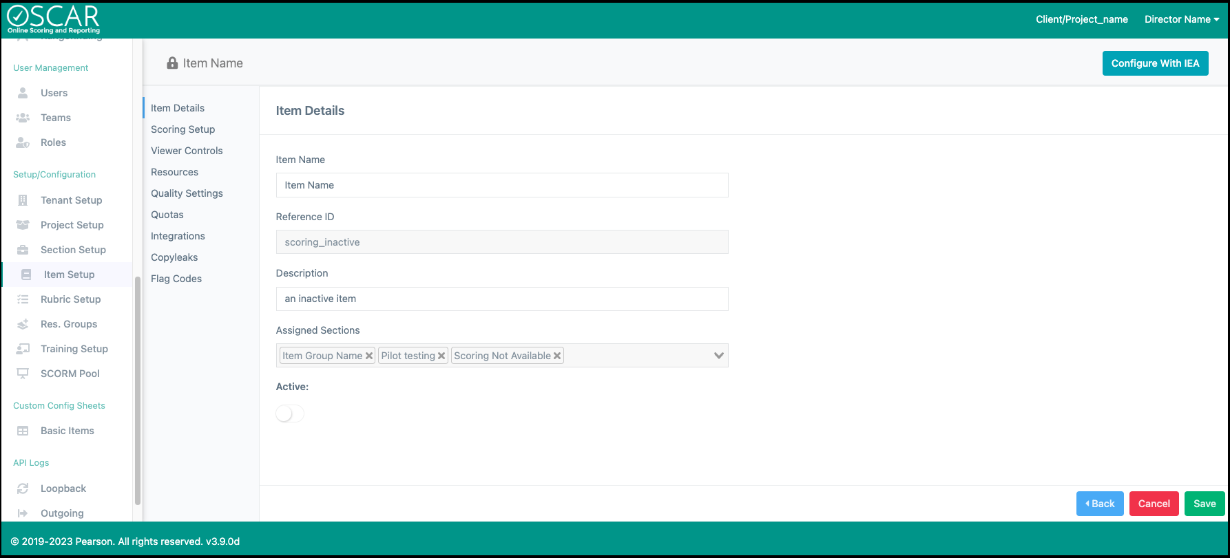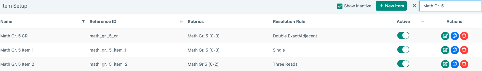 | Active/ Inactive | An Inactive item cannot be scored. |