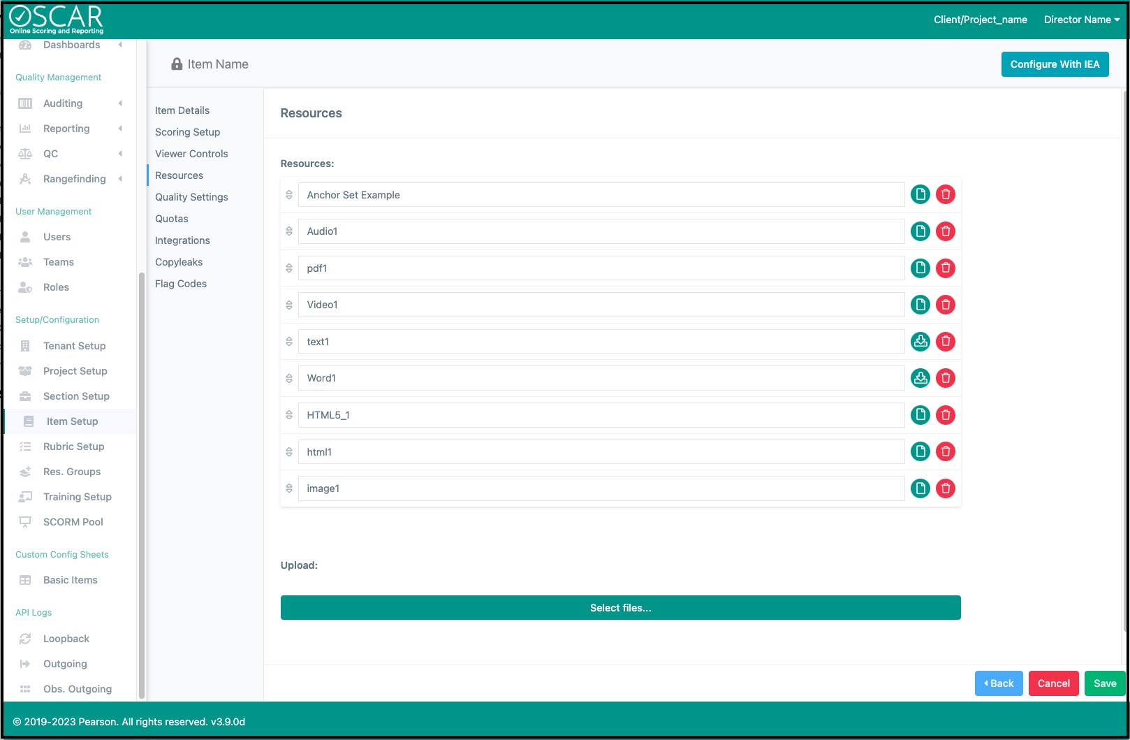 Upload files to use as resources for the item. The resources will be available on the Scoring page or during Scoring and can be opened in another tab. Most files types will be rendered directly in OSCAR though some types of files can only be used a "download only" type of resource, where the file will only be available to the rater as a downloadable link.