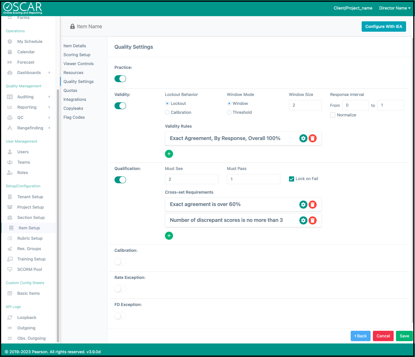 - Qualification: Turn on or off Qualification for the item which will require that raters meet the pass settings to be able to enter Scoring. Learn more about Qualification Settings.