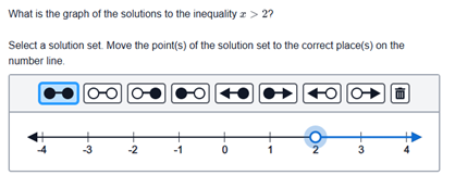 - Under Correct Response, select the appropriate symbol and then plot the correct answer on the number line. Repeat if a second plot is required.