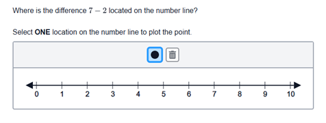 In the number line interaction, the student responds by choosing a point or set of points and then positioning it on the line. This item type is machine-scoring. To support smaller increments, use the Zoom Number Line Interaction.